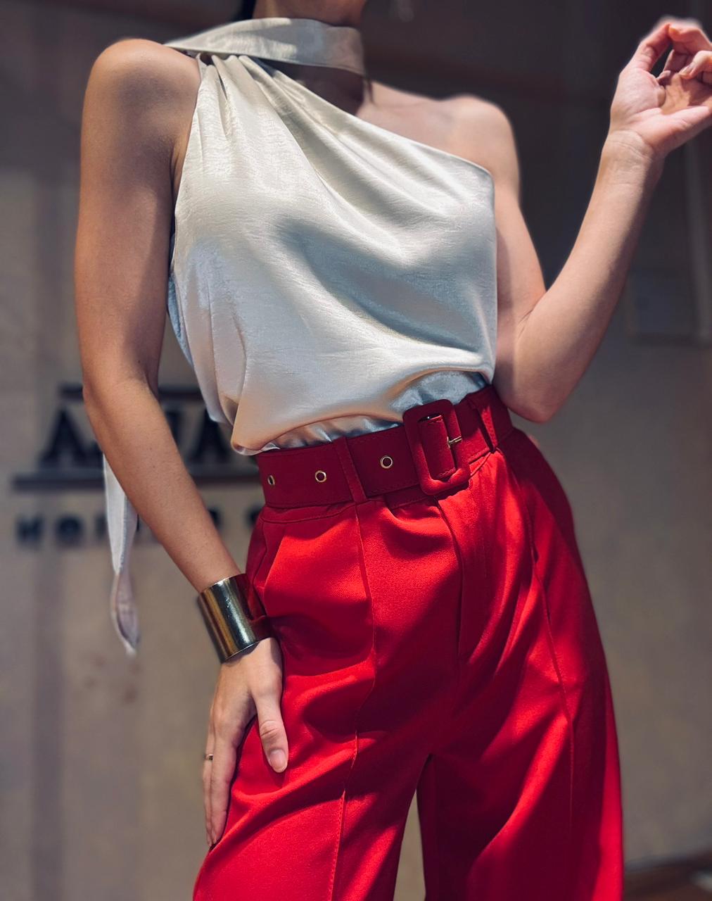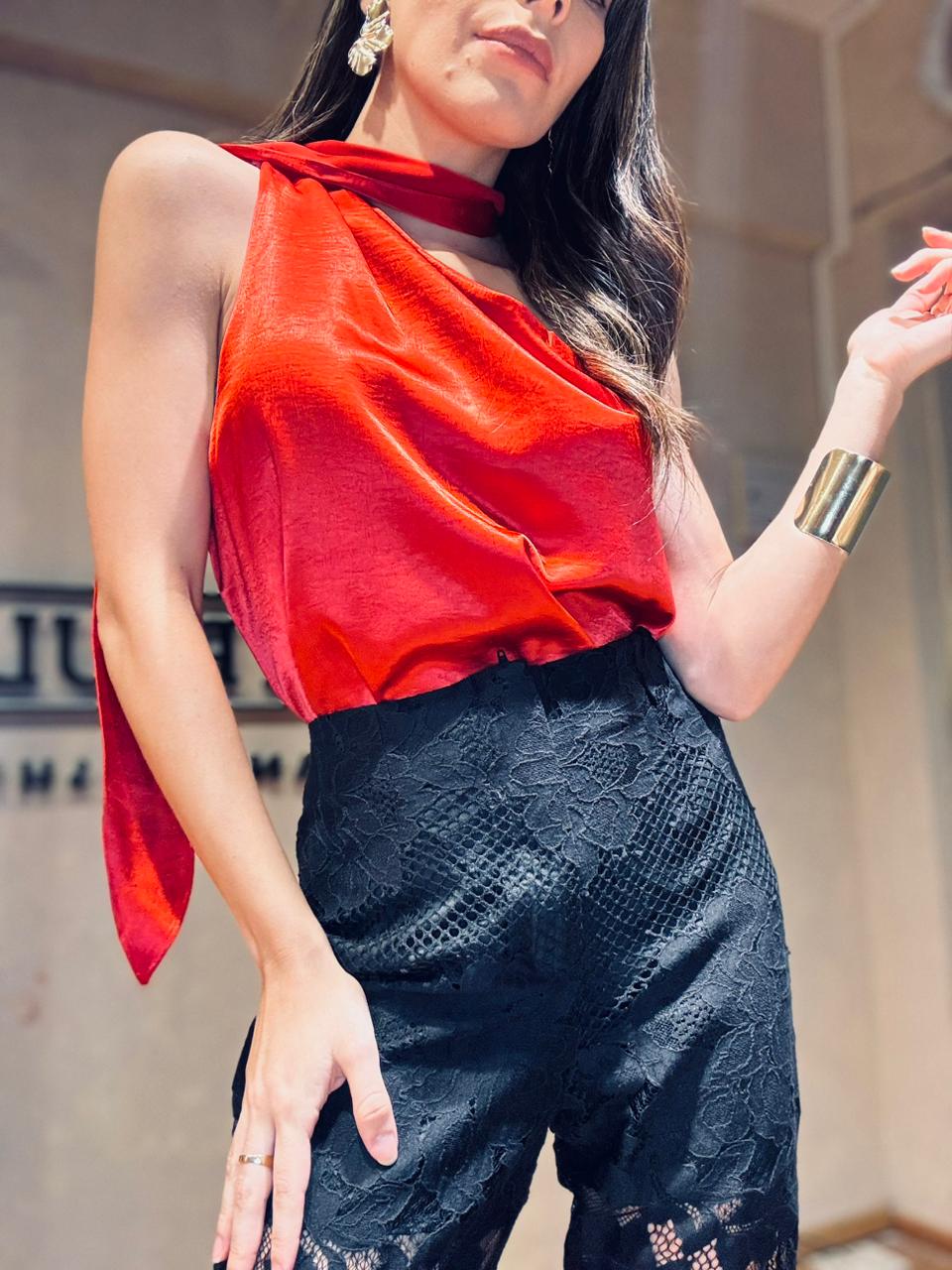 Blusa de satén asimétrica con lazo corbatero, con forreria interna. Calidad premium.