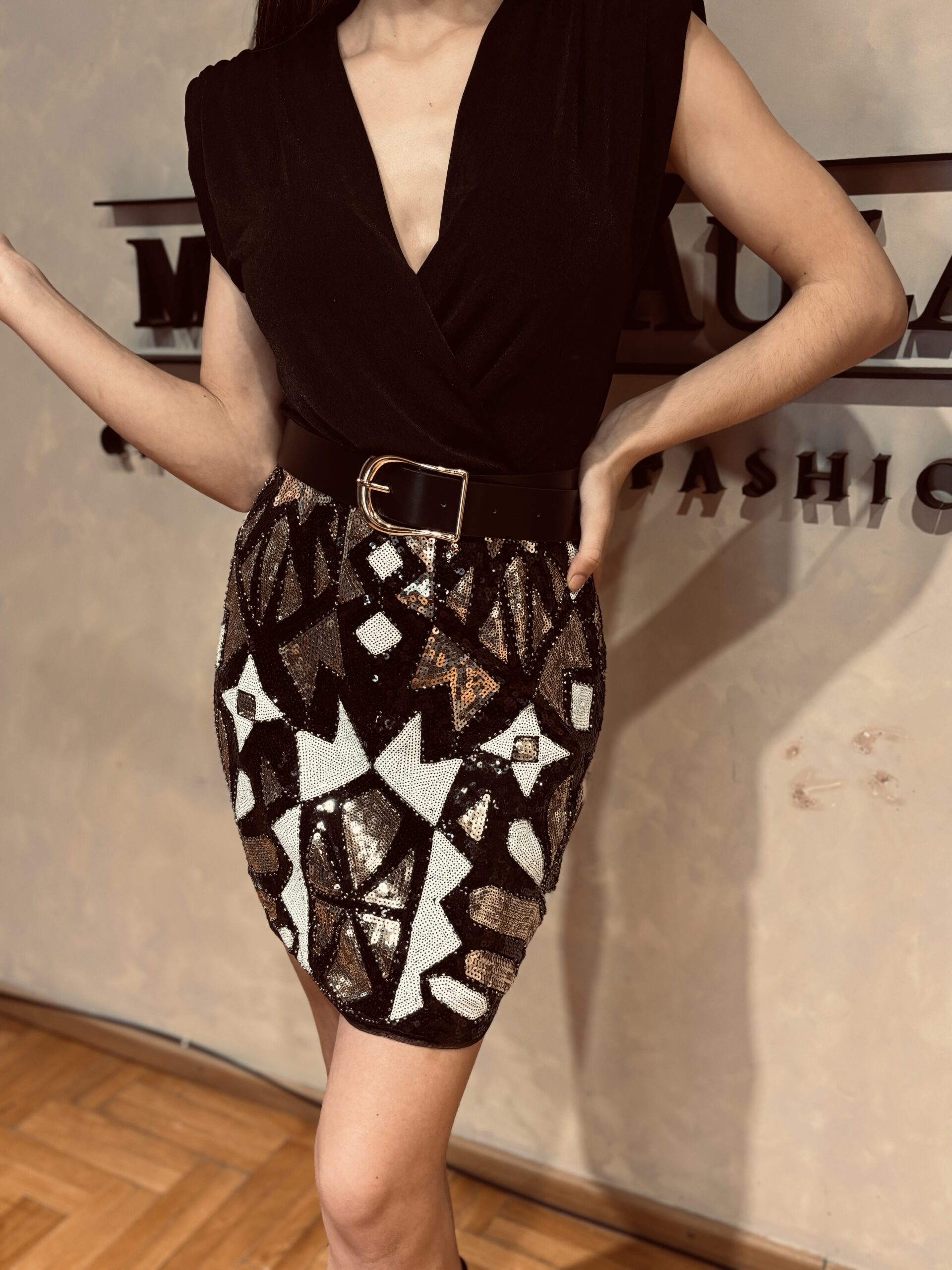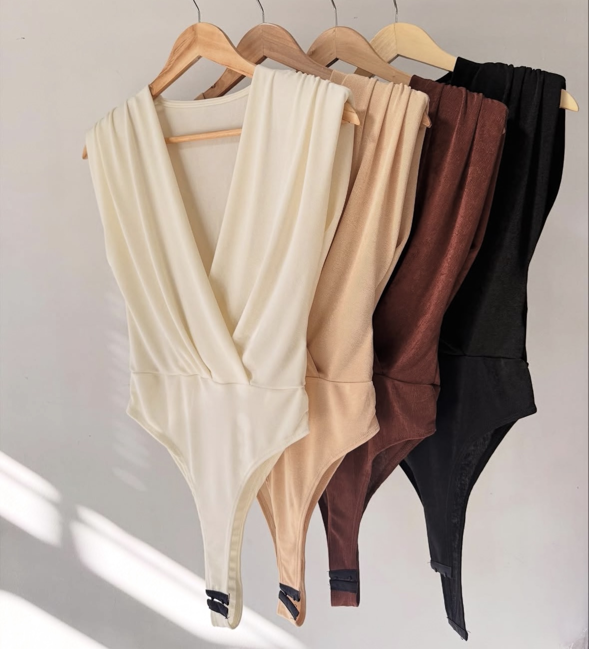 Body de tela slinky con hombreras, prendidura inferior , talle único abarca hasta el L.