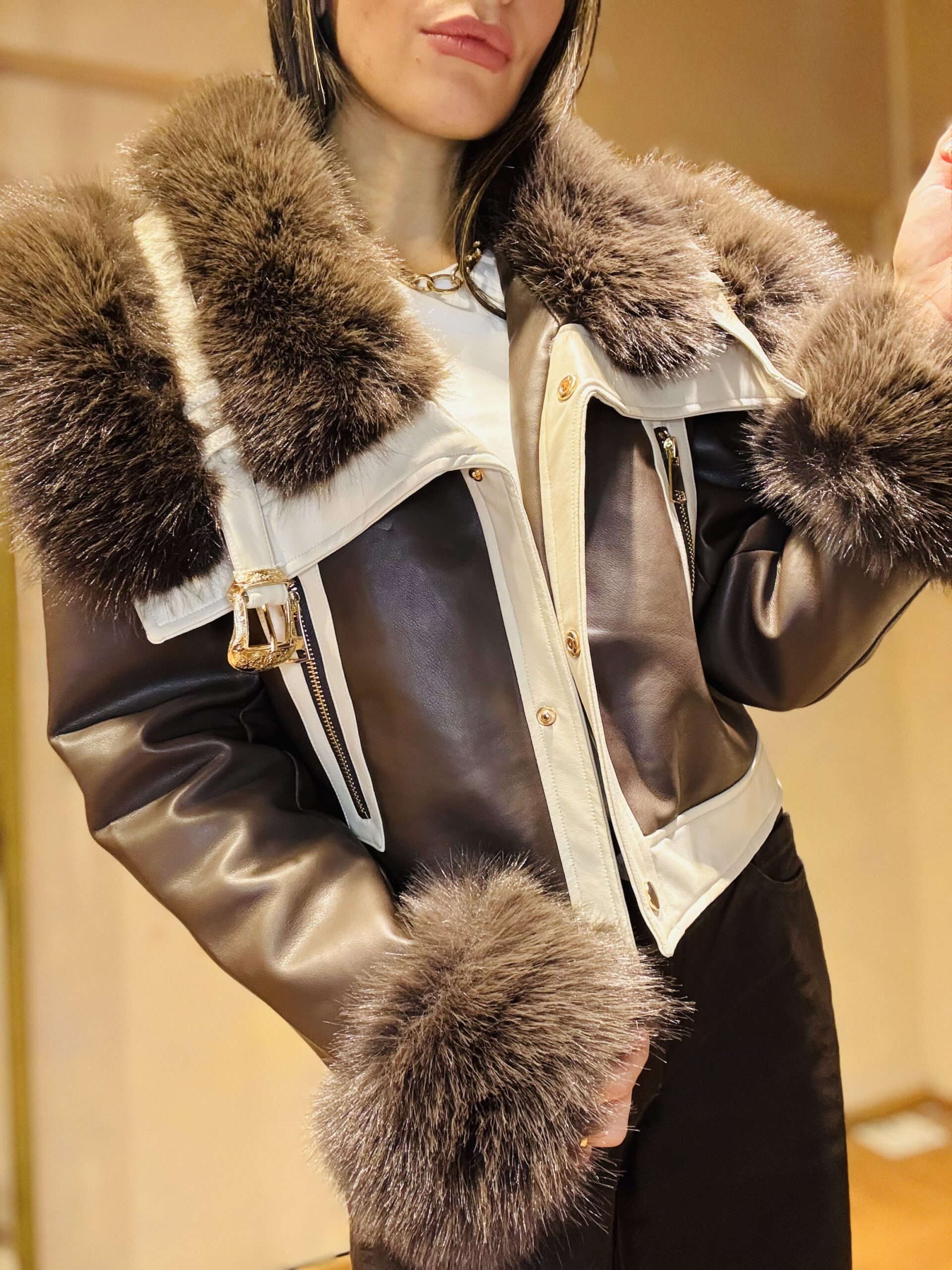 Campera símil cuero, forrada en su interior con peluche, la piel no es desmontable, calidad premium, muy abrigada.