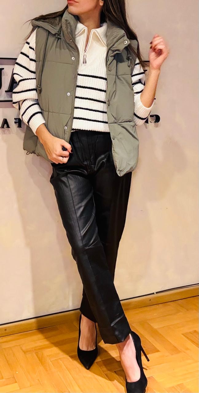 Chaleco puffer, con capucha desmontable, forreria interna en pana. Abarca desde un S al L
