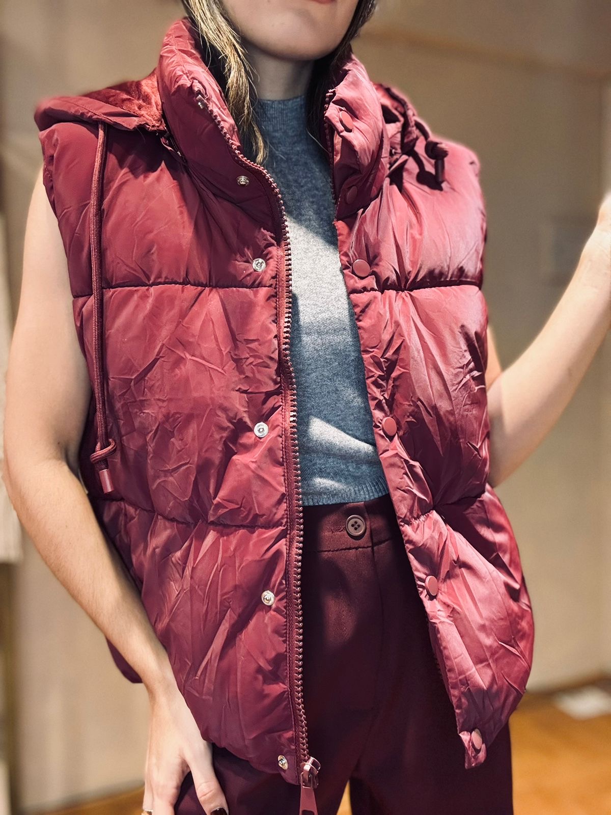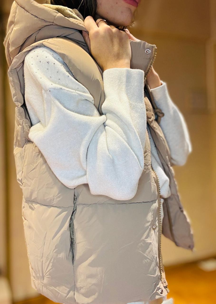 Chaleco puffer, con forreria interna aterciopelada, capucha desmontable, calidad premium.