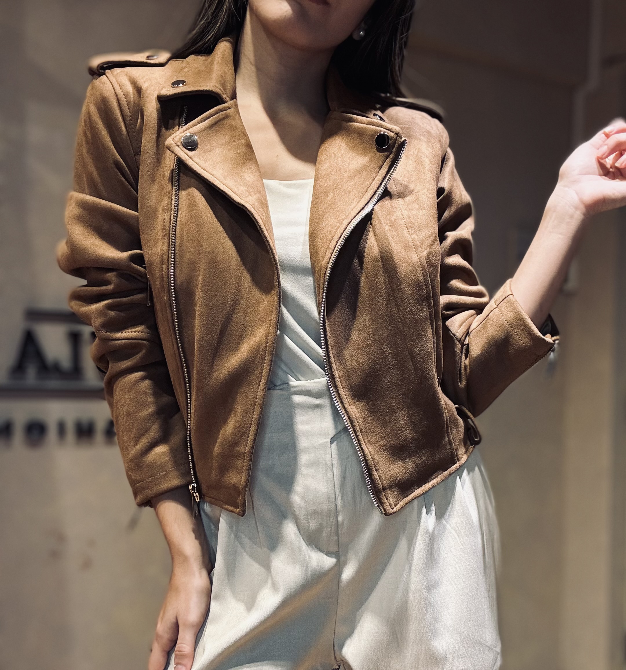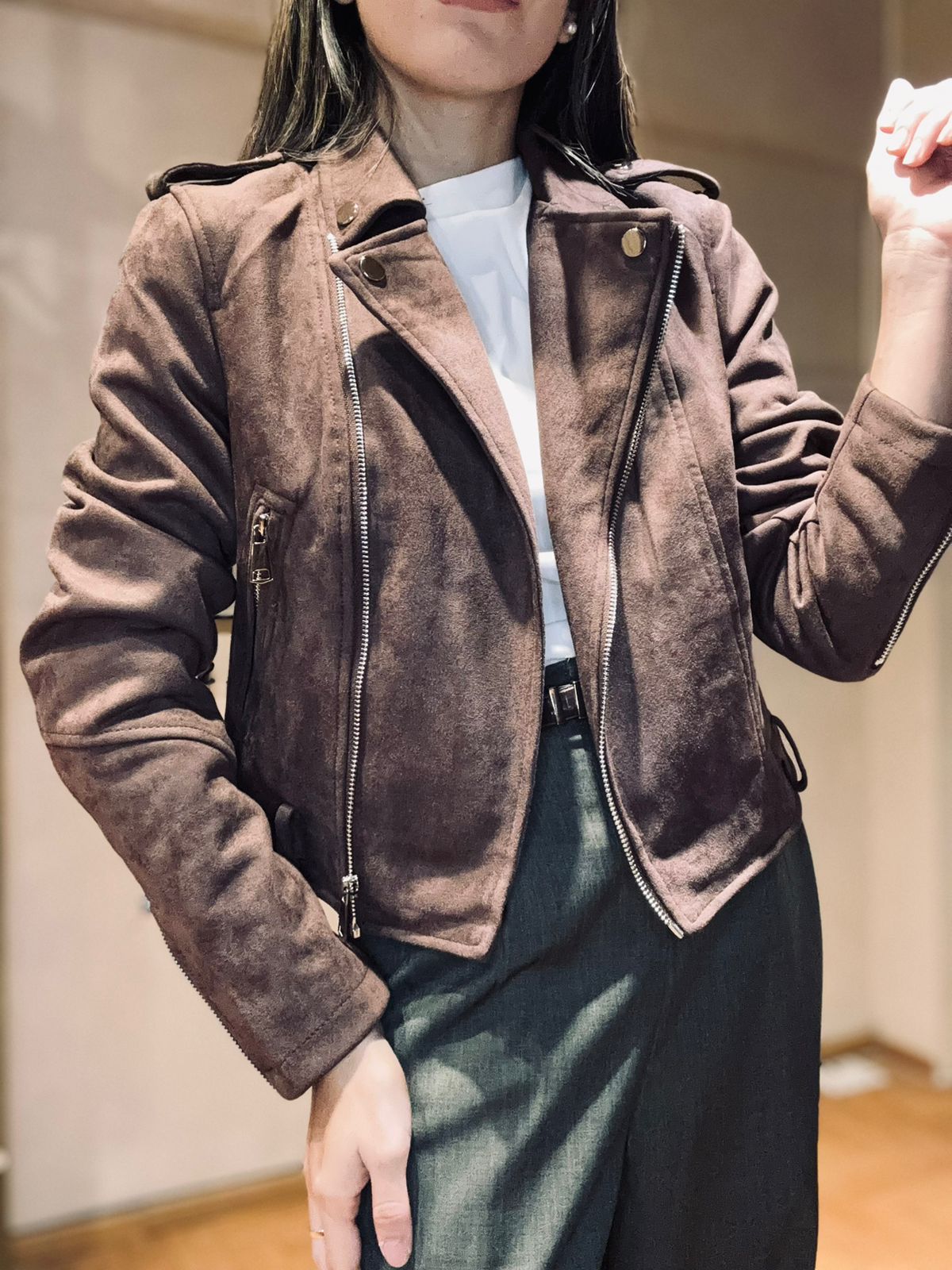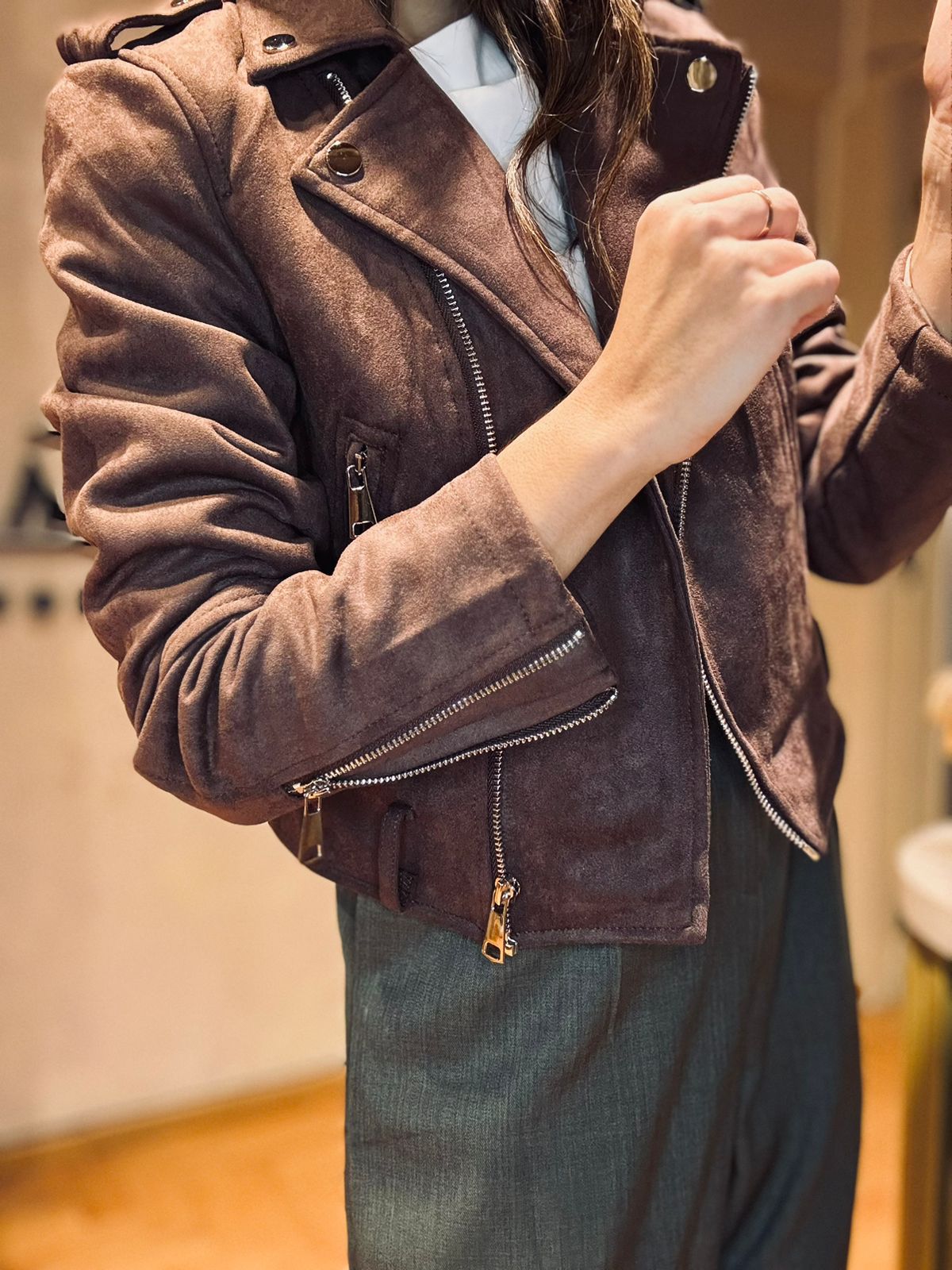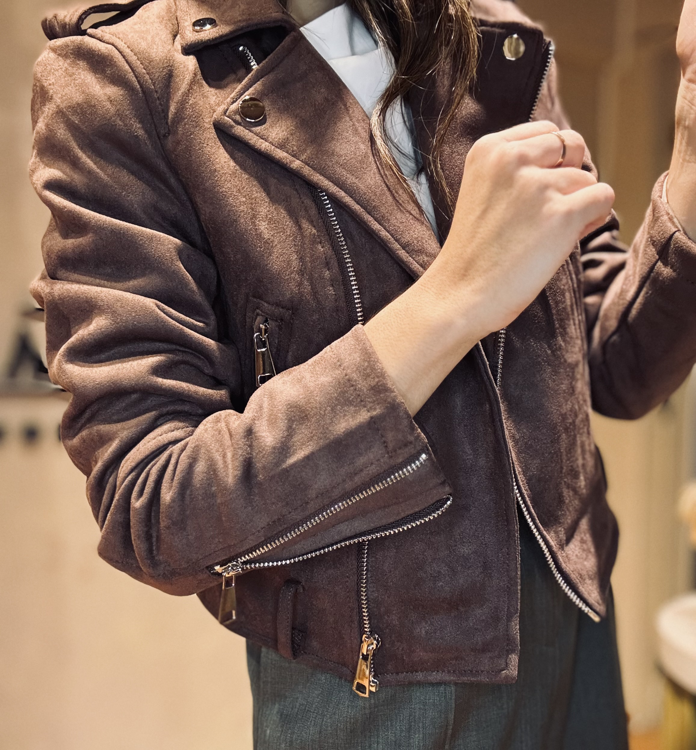 Jacket gamuzada con cierres