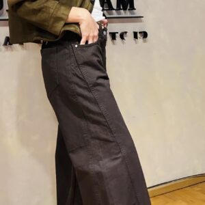 Leggins simil cuero con cintura elastizada y detalle de costura frontal. Textura interior afelpada.