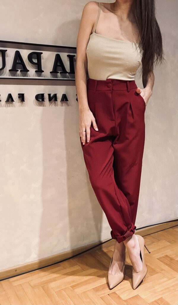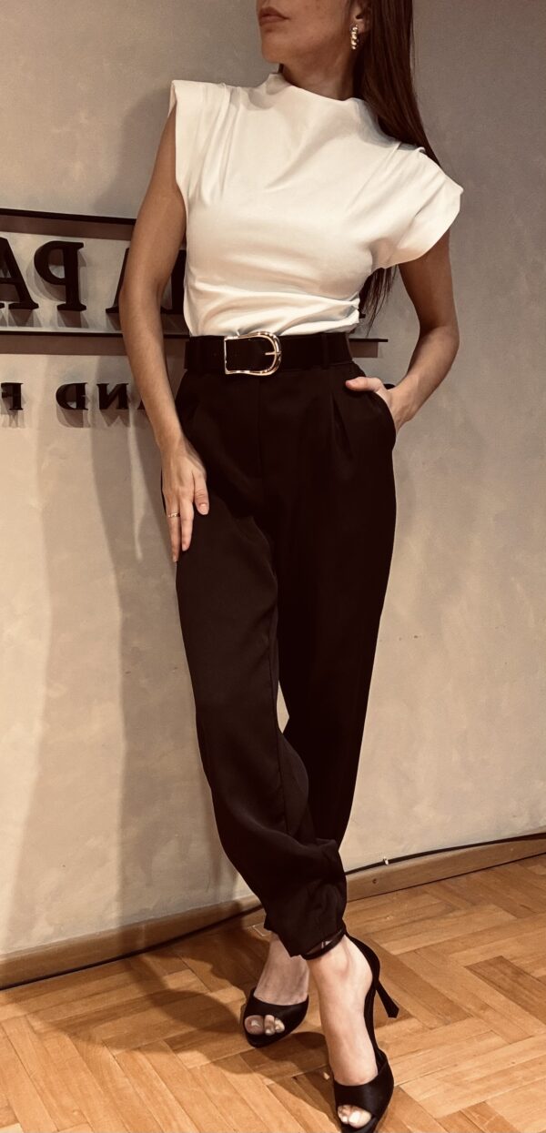 Pantalon sastrero recto con cierre en botamanga, botón frontal y pasacintos.