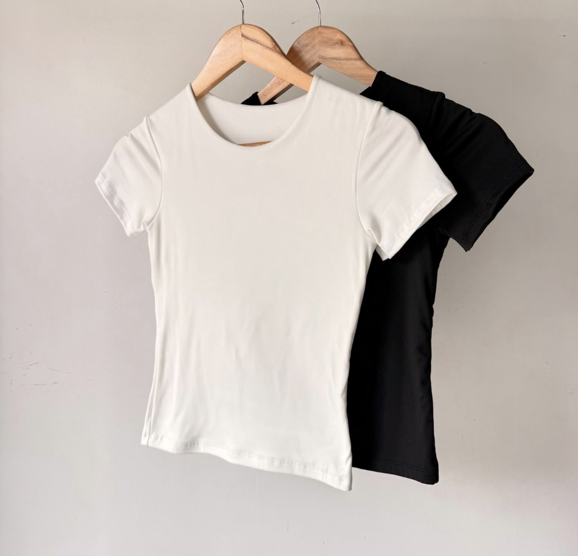 Remera básica mangas cortas, doble algodón, textura afelpada, mucho spandex y bien calce!