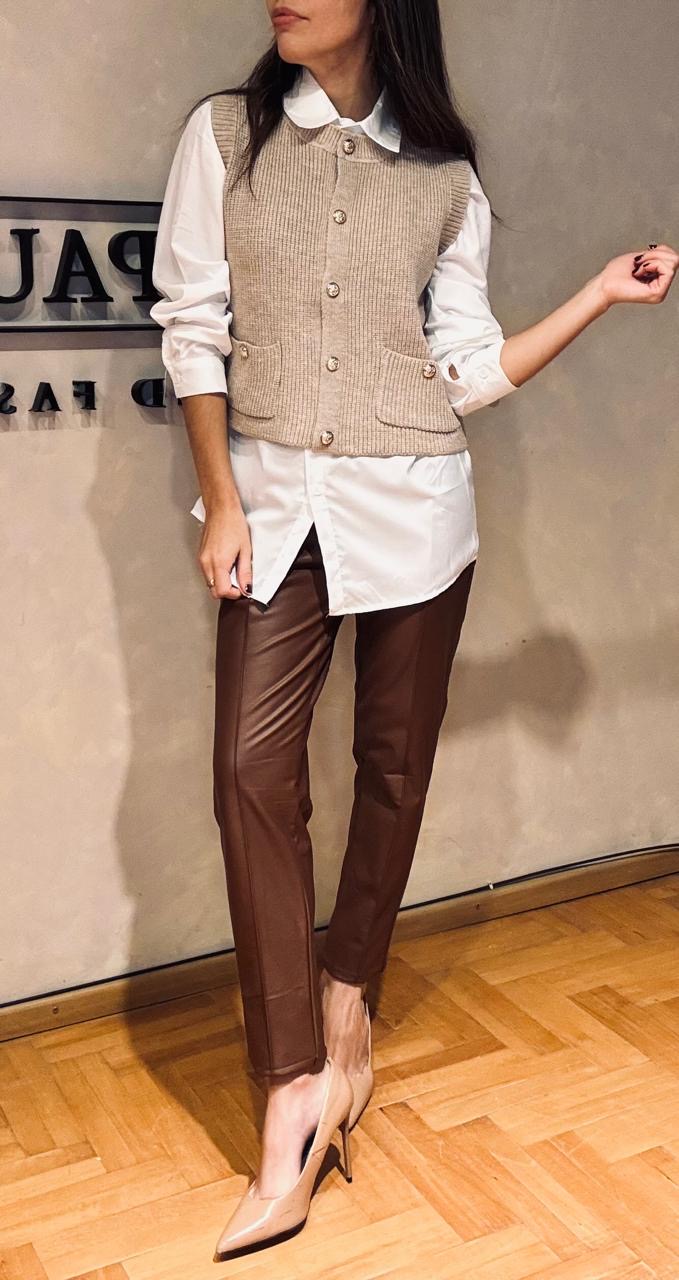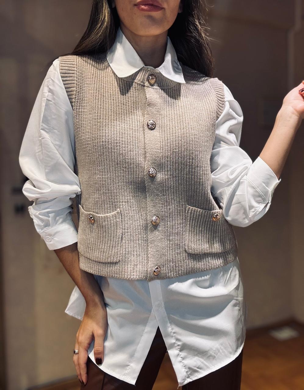 Set de camisa poplin con chaleco tejido y botones dorados, se puede usar por separado, abarca hasta talle L!