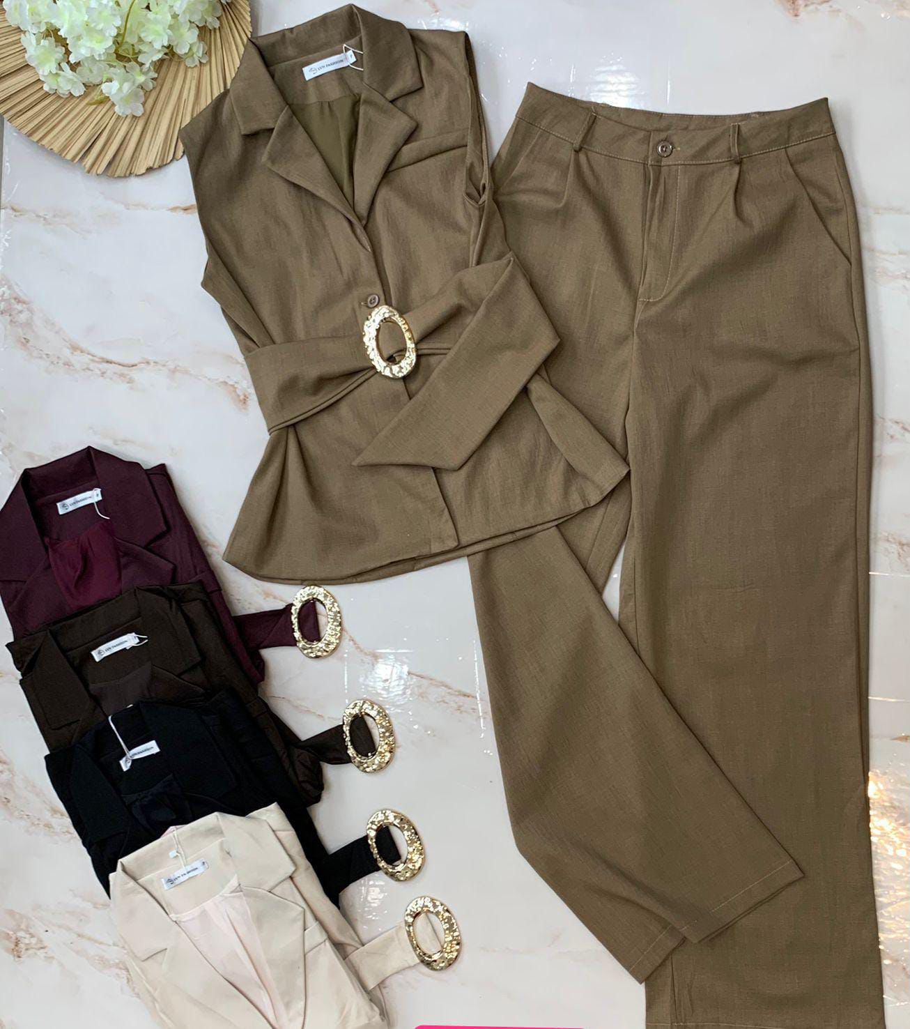 Set sastrero de dos piezas. Chaleco y pantalón palazzo, forreria interna, pantalón pinzado corte clásico, bolsillos laterales. Detalle de lazo con hebilla dorada para ajustar a medida.