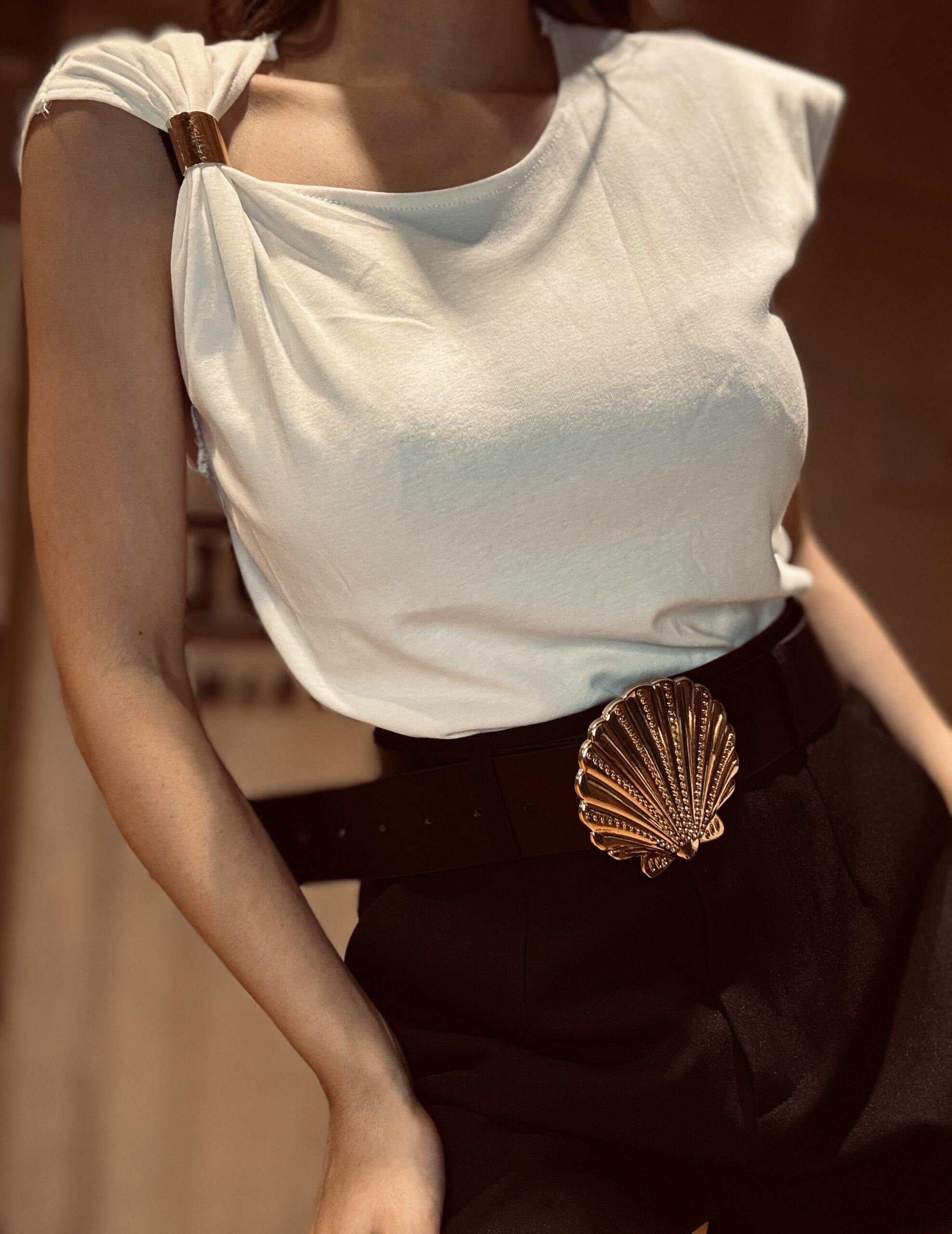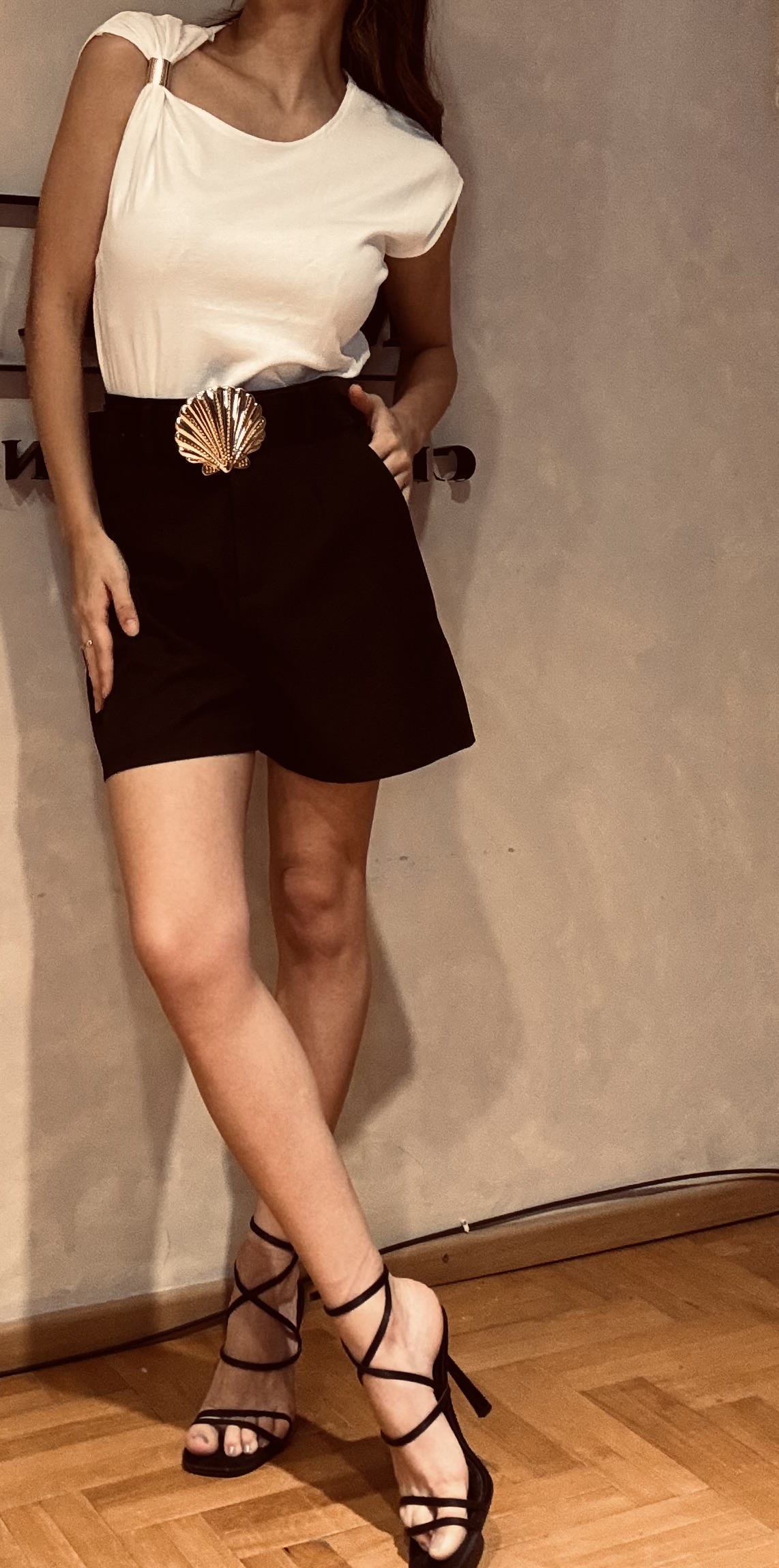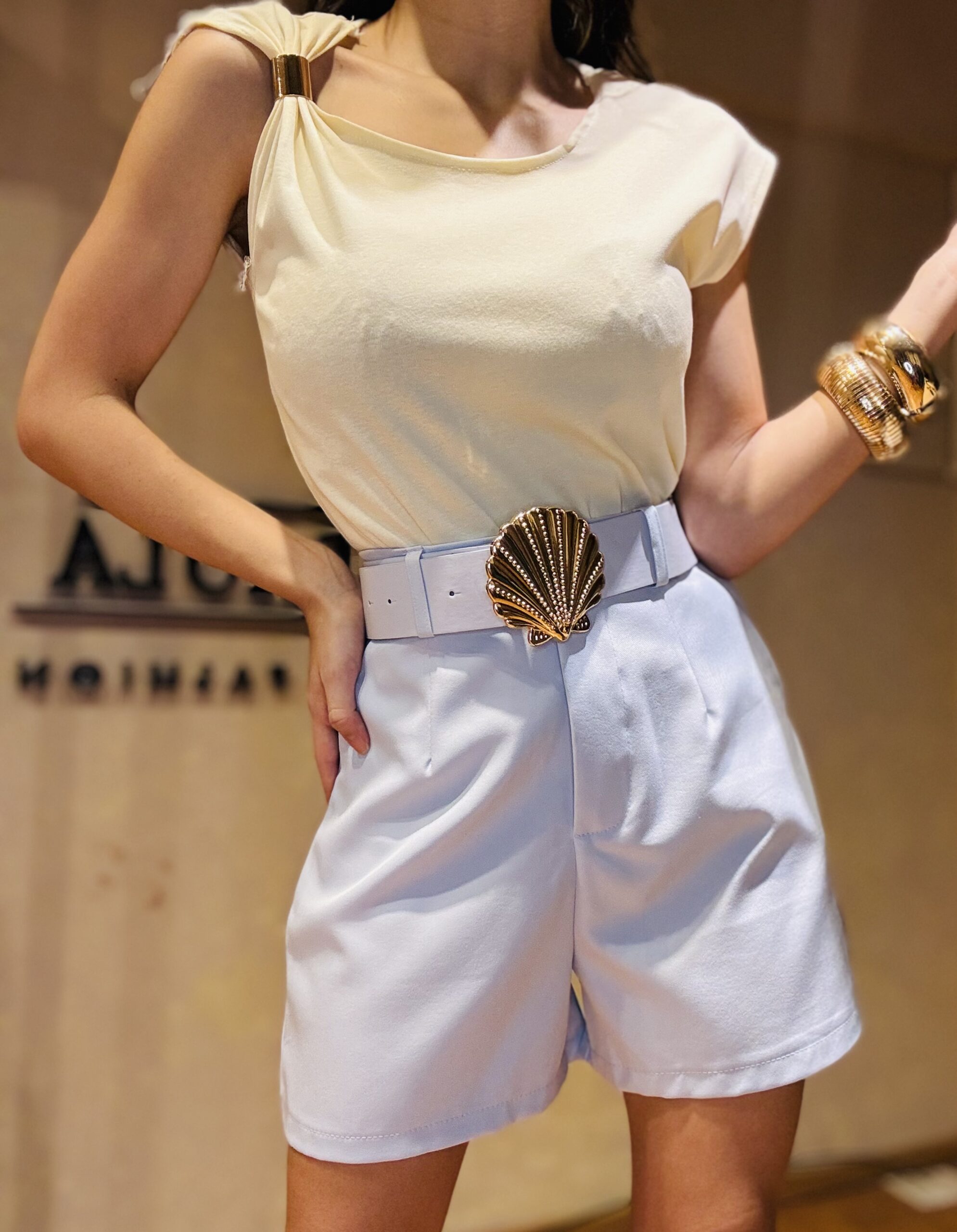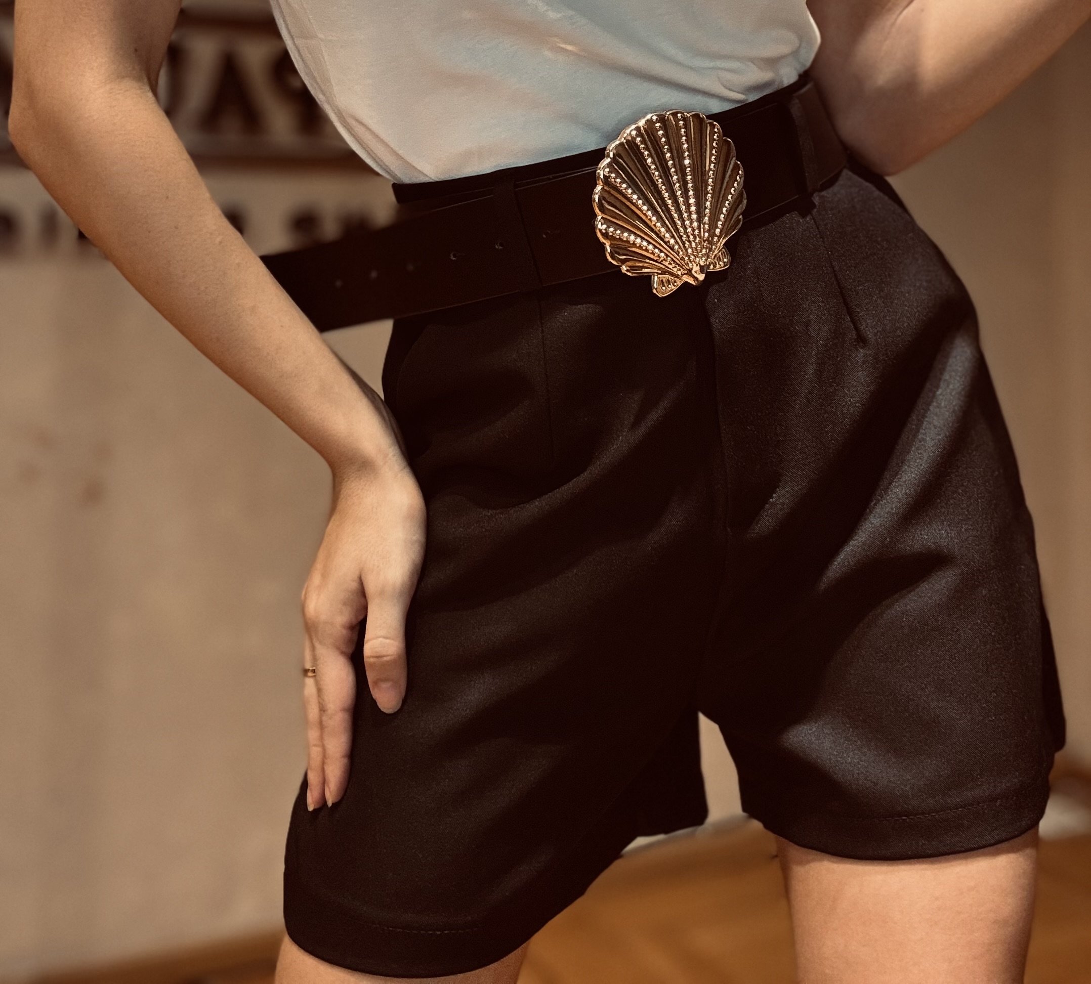 Short con cinturón hebilla dorada